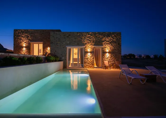 Adyton Mykonos Luxury Suites & Pools med 6 rum, som ligger inom 6 km från Lilla Venedig, erbjuder utomhuspool och uteplats för gästerna. Villan erbjuder avsvalkningspool för gästernas avkoppling.